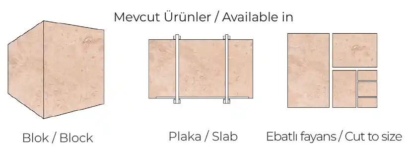 Travertines are sedimentary rocks formed as a result of geological, geomorphological, hydrological, climatological, and biological activities. Travertine formations are commonly observed along tectonic fault lines. Denizli Travertines are a Geographical Indication, differing from travertines found in other regions. Travertines are used in facade, floor, wall, and furniture designs. Depending on the project typology, they can be used naturally, with epoxy filling for interior spaces and cement filling for exterior spaces. Travertine exhibits different texture characteristics depending on the cutting direction and is produced using two different cutting techniques: vein cut and cross cut. In addition to being produced in blocks and slabs, it can also be cut to size. It is a natural stone that can also be treated with honed, brushed, and other surface finishes.